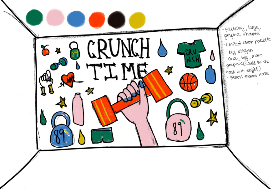 Throughout my internship at Crunch, I assisted the creative team with graphic design, social media, and BrandBuilder assets, participated in content creation and editing for Crunch+, and helped ideate, design, and present a 35th birthday celebration plan. I also helped design mural ideas for their gym in Park Slope.